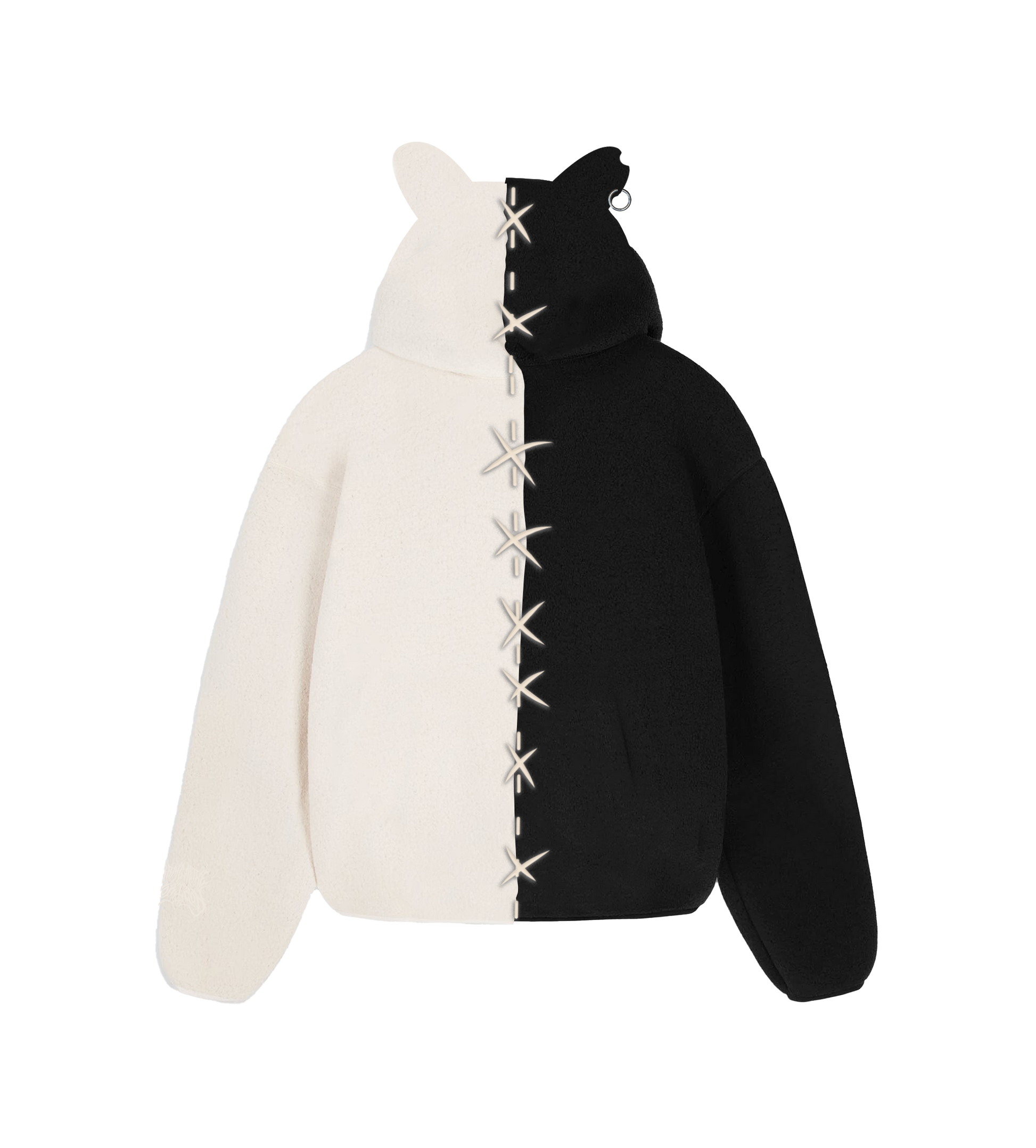 - Ear detail on the hood